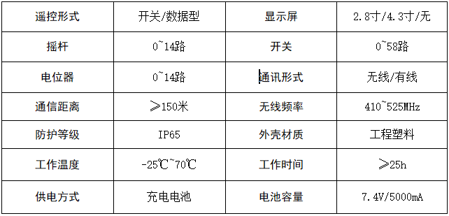 遙控可選裝2.8寸、4.3寸顯示屏,實時反饋工作狀態。輸出形式可選電流、電壓、數據,也可根據需求任意組合。數據可選CAN2.0、Modbus、RS232/485、Profibus、Profinet等通訊協議。遙控可實現多對一、一對多功能,可定制超遠距離信號傳輸(>=1KM)。